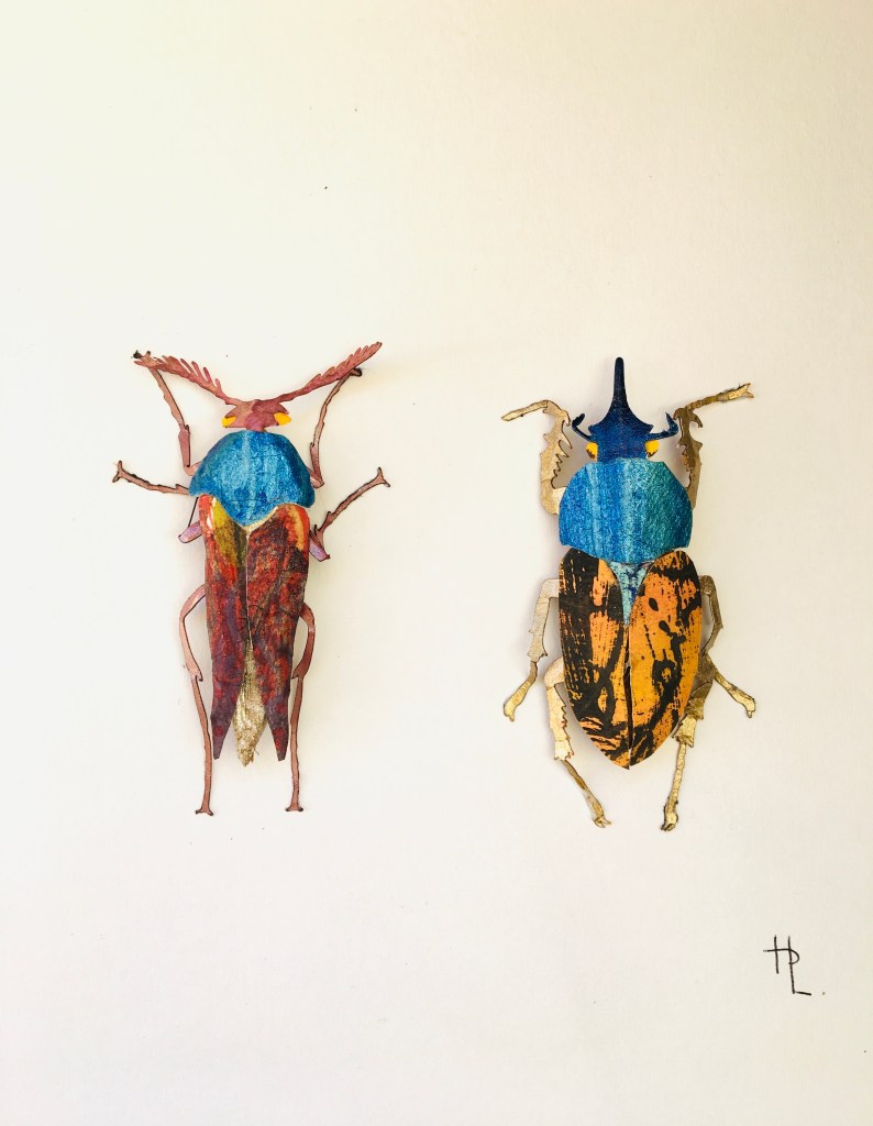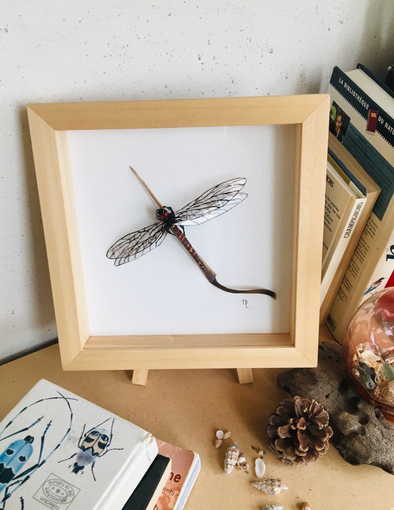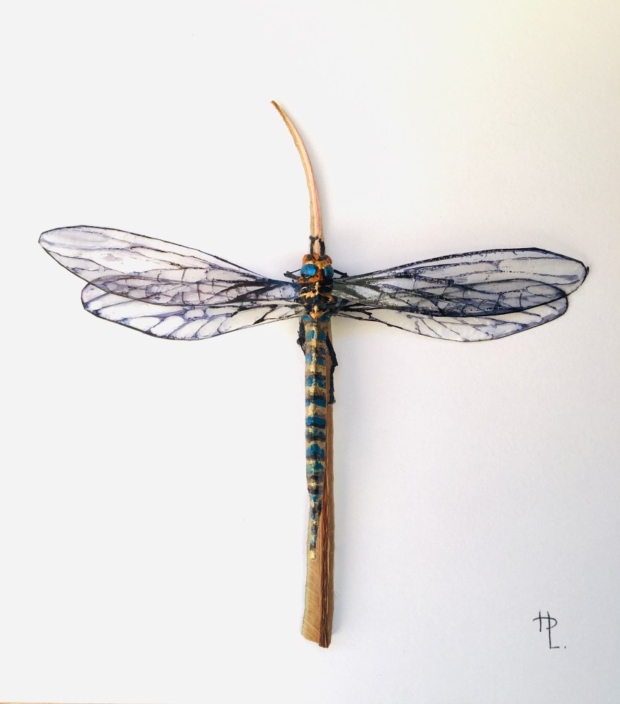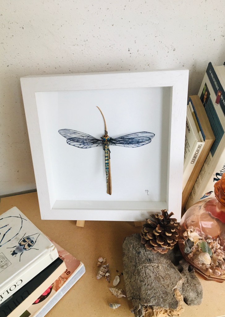 Décembre 2021, 14 x 14 cmDécembre 2021, 24 x 24 cm2021, 17 x 12 cmles étapes de création des libellules, carton d’emballages, plastique de bouteille, papiers, fils de fer, feutres, gouache