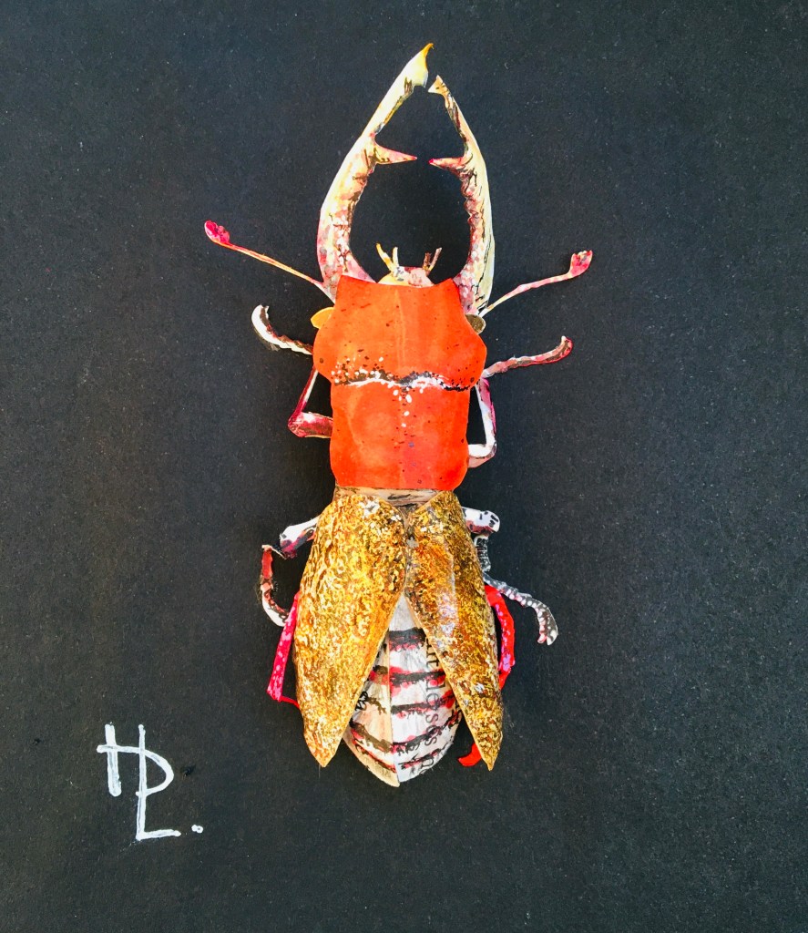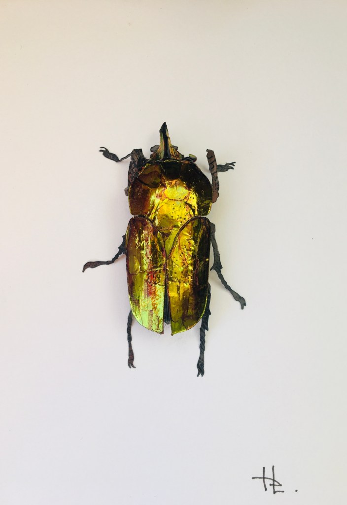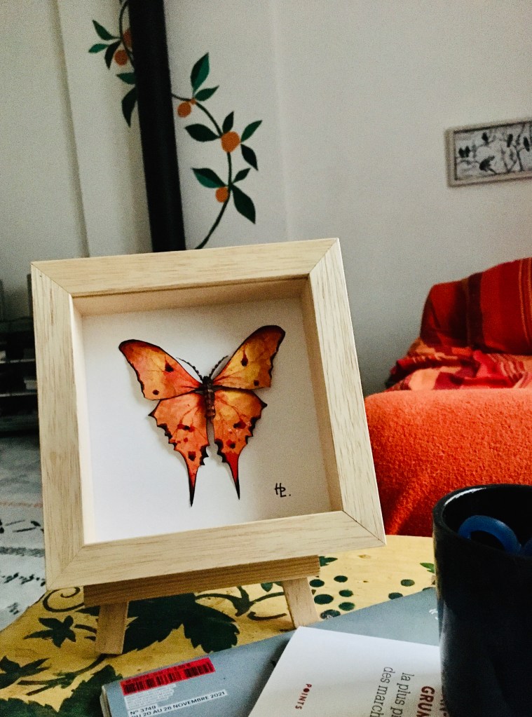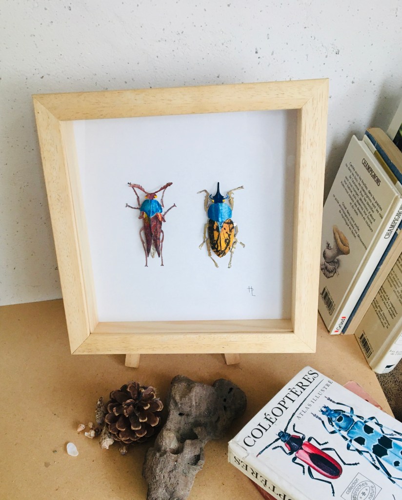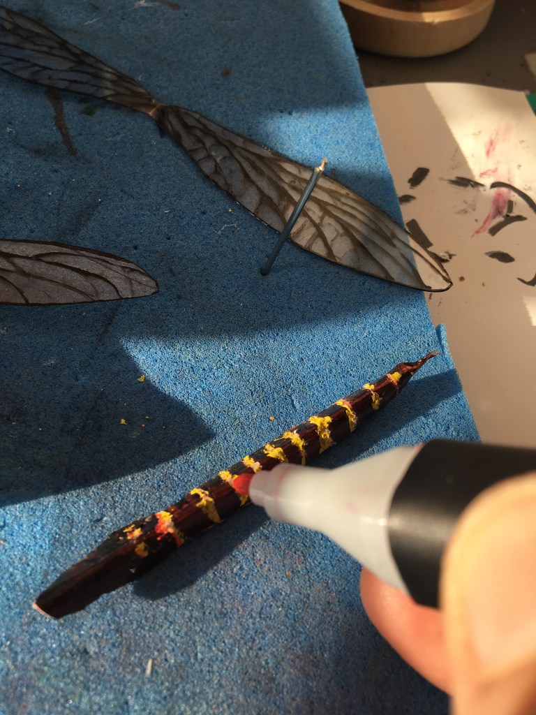 Décembre 2021, 14 x 14 cmDécembre 2021, 24 x 24 cm2021, 17 x 12 cmles étapes de création des libellules, carton d’emballages, plastique de bouteille, papiers, fils de fer, feutres, gouache