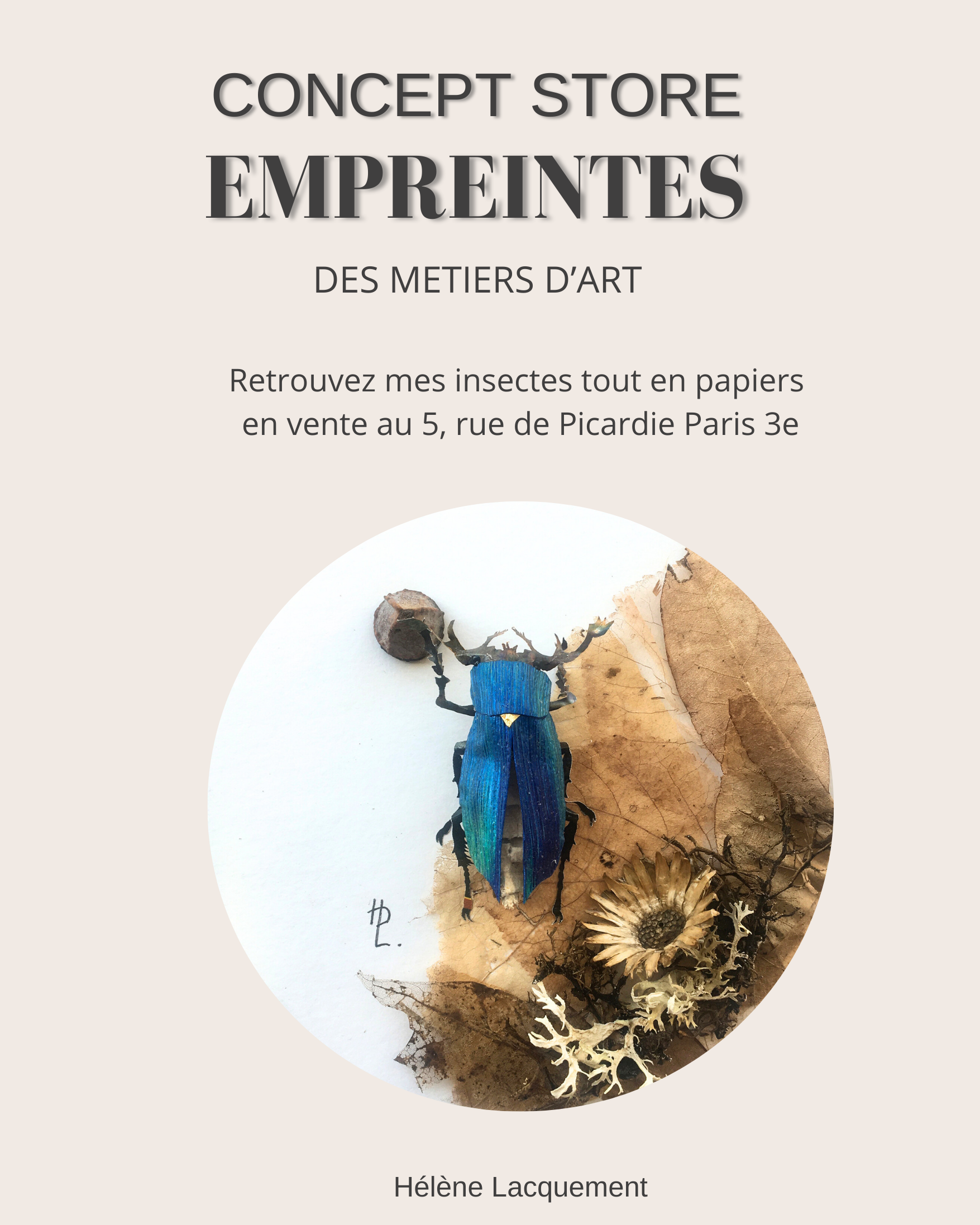 Curiosités de papiers disponibles à partir du 1er septembre 2025 au Concept Store des Ateliers d’Art de France, à Paris. Scarabées bleutés, papillons dorés… pour s’envoler à la rentrée…