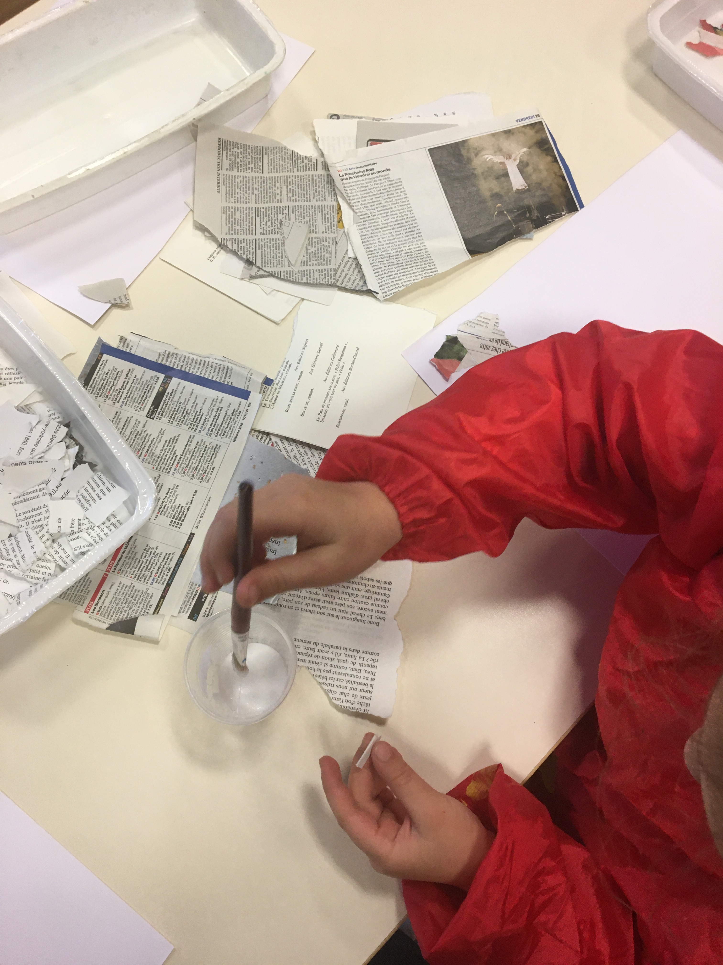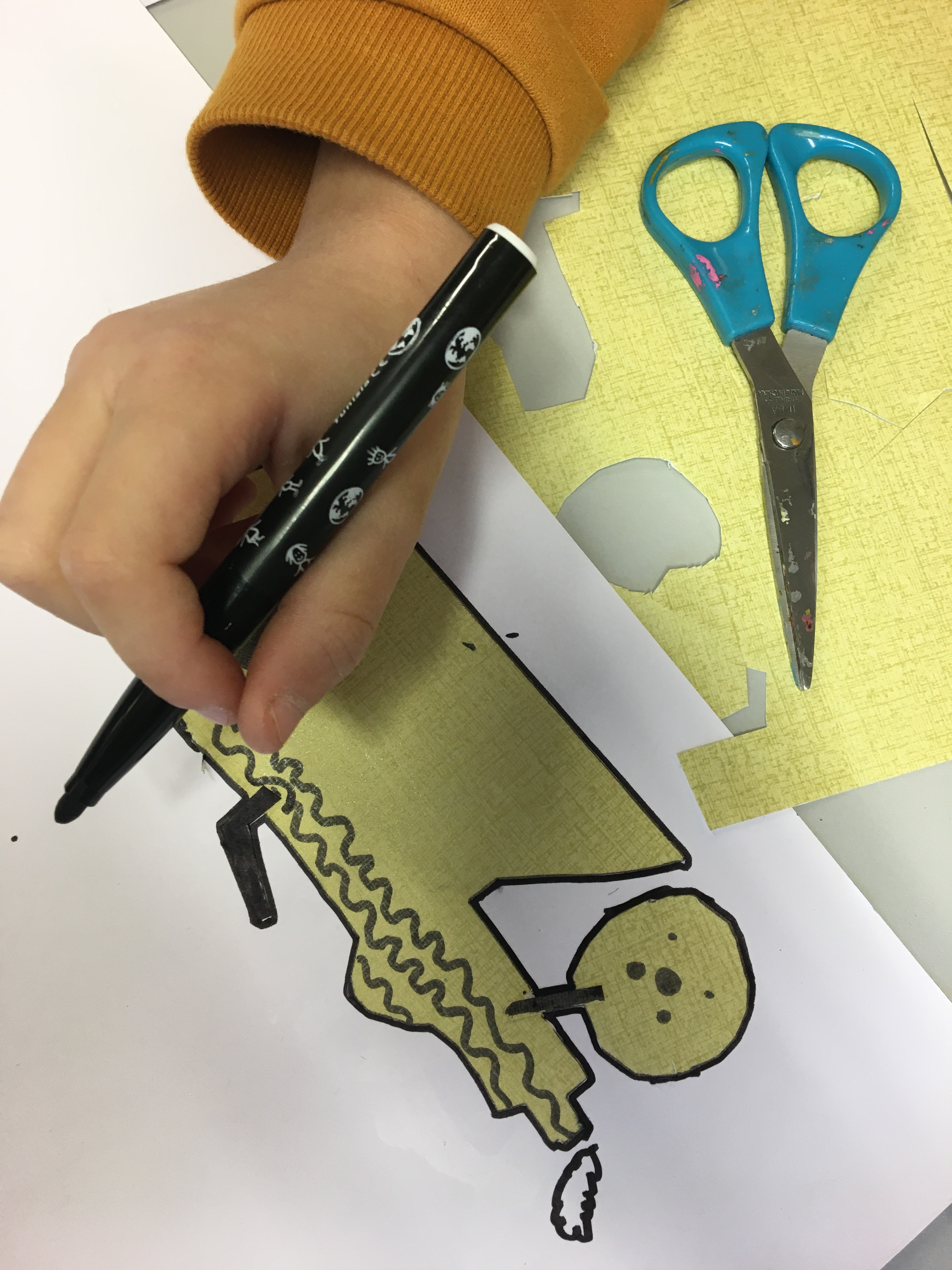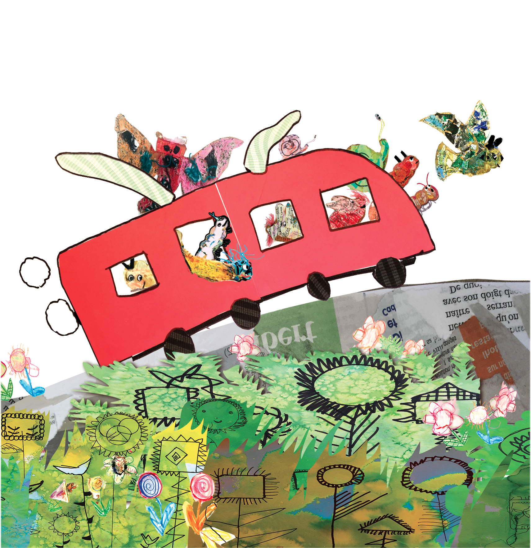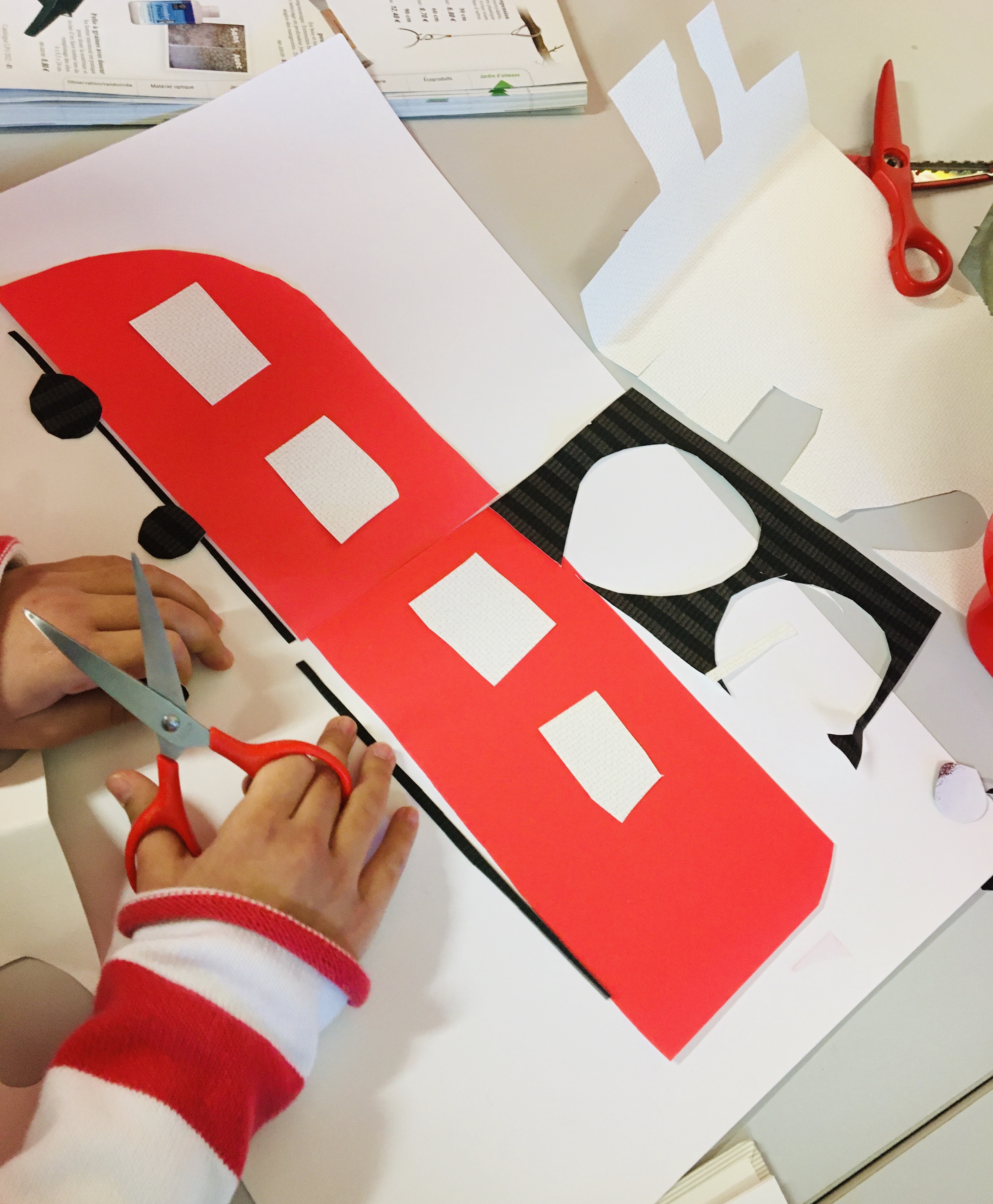 Avec les enfants des centres de loisirs, création d’un album illustré, en s’inspirant de l’album « Une poupée de bric et de broc » (NM Serre, H Lacquement, éditions du Mont) sur le thème de la correspondance : on imagine ce qui arrive aux petits personnages de carton et de « bric et de broc » que l’on a fabriqués, on crée les décors, les véhicules tout en papiers récupérés… on expérimente les techniques , encres, collage, on invente des timbres et des cartes imaginaires…