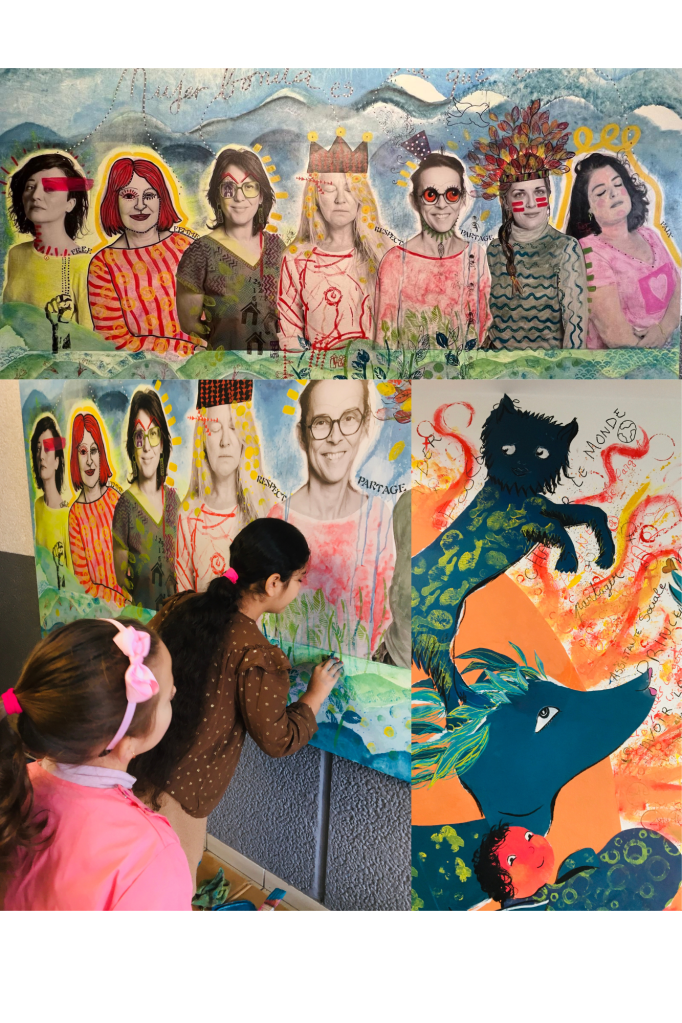 Evocation des âges de la vie des femmes, sous une forme colorée, prenant en compte la parole des habitants sur leurs projets d’avenir, leurs rêves (si j’étais …).