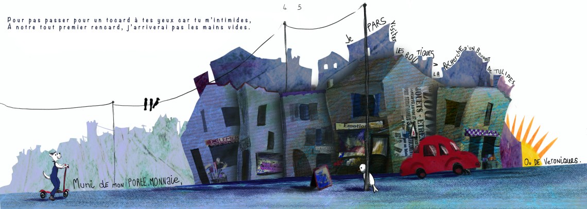 Illustrations d’albums jeunesse, techniques traditionnelles ou numériques : collage, encres, crayons, pastels.