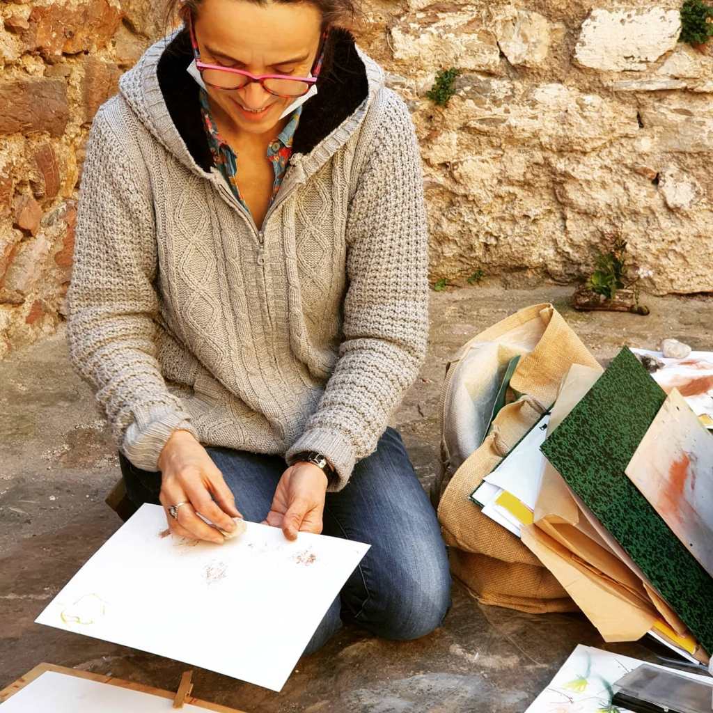 Dans le joli jardin du château de Calce, avec l’association 3C Calce Culture Contemporaine, février 2021.