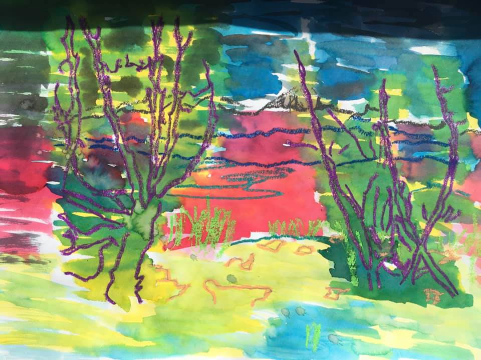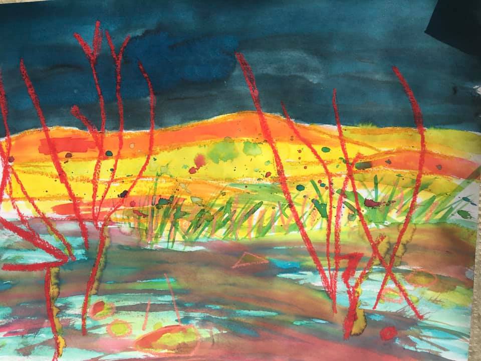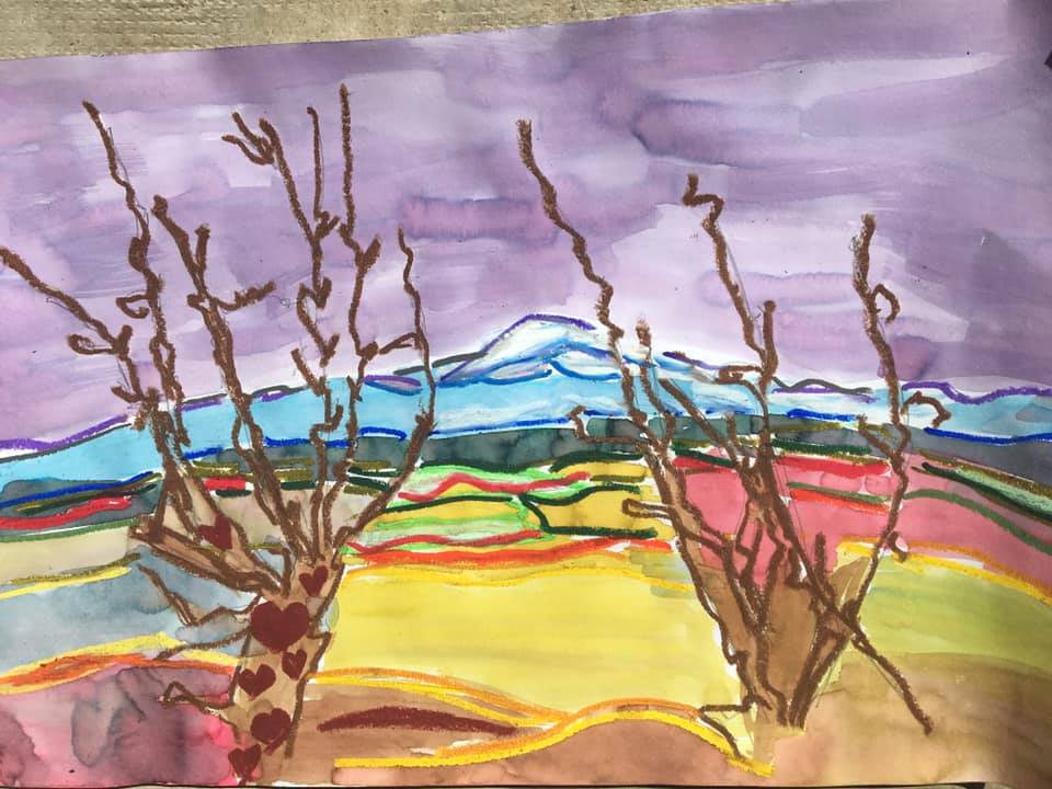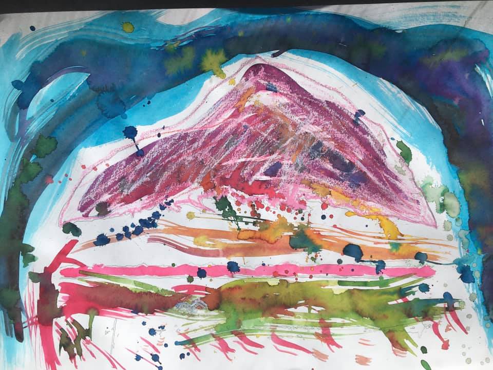 Inspirés par cette poésie, on détourne, on transforme allègrement un paysage de montagne célebrissime dans notre région (le Canigou…) avec les outils numériques, avec des encres, les craies d’art, pour créer un paysage personnel et personnalisé.